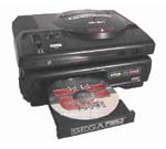 The Mega Drive (Genesis) is mounted to the Mega CD (Sega CD) unit