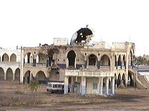 The Palace in Massawa qualifies as an Imperial Palace due to the fact that Emperor Haile Selassie resided there when he visitied once a year for the graduation ceremony of the Cadets from the Imperial Ethiopian Naval Acadamy. However, the Palace was built much earlier by the Turkish rulers of Massawa during their long occupation of the port, and was inherited by the Egyptians and later the Italians. Built with airy arches and domes to cool the palace with ample airflow, due to the oppressive heat of the port, the palace was once a glittering gem on the shoreline of the island it was located on. During the brutal battle for Massawa between the Ethiopian Communist government and the Eritrean Independence movement in the late 1980's, the palace was struck by bombs, and has been in the ruined state shown here. It is now in the posession of the government of Eritrea, and it remains derelict. There was once talk by the Eritrean government of restoring it to become a museum, but nothing appears to have been done.