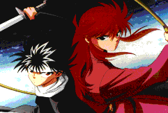 Hiei and Kurama - fighting back to back (Hiei's in his purple outfit