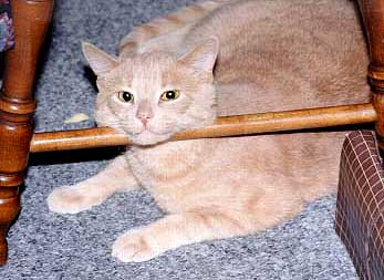 From all these pix you may have noticed that Mel's a versatile cat; he sometimes seems to be a plain tawny puma-type color, and other times he has stripes!
