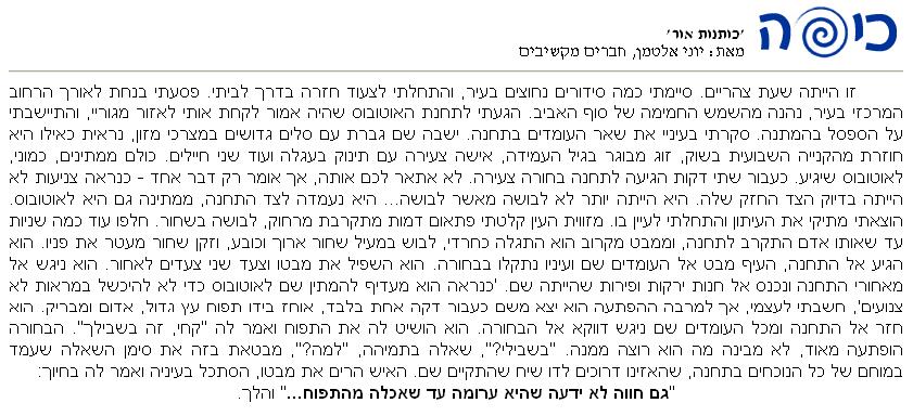 It is not easy. For awhile now, even after reading the above article, I am not able to have a complete theory about the Clothing problem. The only thing I can say is that Clothing Do & Do Not reflect on the person who wears them. Interesting is the idea Yoni brings about External and Internal aspects. I look at what he writes, specially in the last section of the article, in a different angle. Excluding the non-modest aspect of clothing, and emphasizing more about what the External and Internal means. As I wrote in the previous page about Hollowness etc..; For the most of it, in the modern western-cultured world, the "uniform" (suit & tie) people wear, reflect nothing about the person wearing them. That is true too to other kind of clothes.