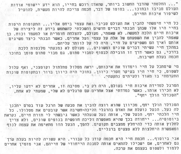 Biosophy. In 1995, Flipping through a new-age magazine, I found an essay about being a Biosopher. I copied those parts I felt (already then) related to my life.