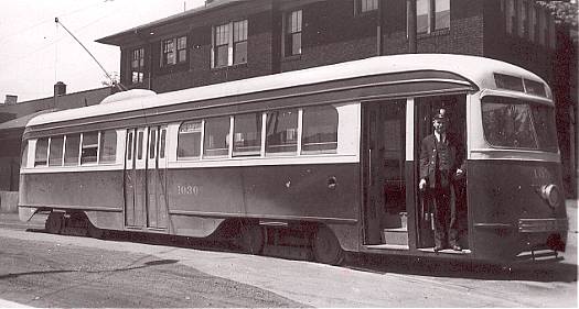 | The motorman of car 1030 seems to take pride in his charge. Signed for 94 Sharpsburg; date, location unknown to me. Roger DuPuis Collection; photographer unknown. |