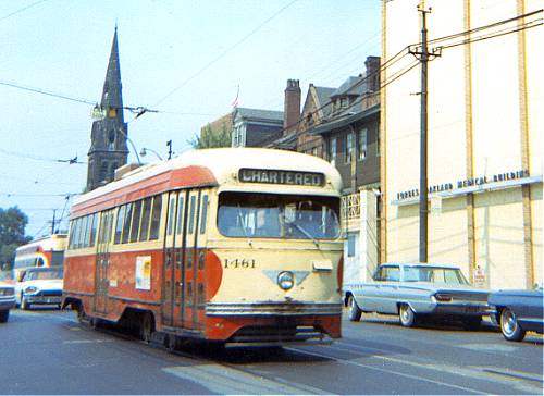| Chartered air PCC 1461 is seen on Forbes Avenue below Craig. R.H. photo; Ken Josephson Collection. |