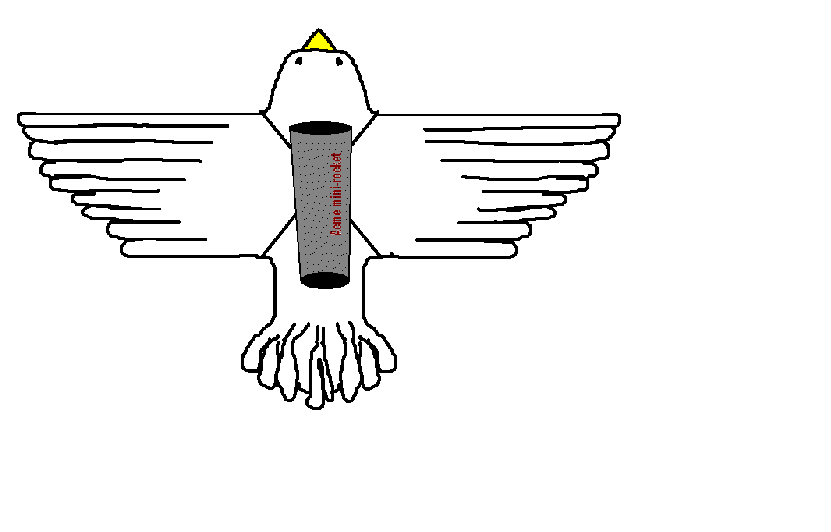 Step Two. Make a Mini-rocket jet pack for the pilot. You can do this by taking a engine for a model rocket and making a harness out of string.caution do not glue the rocket to the bird this will make it a one time use.