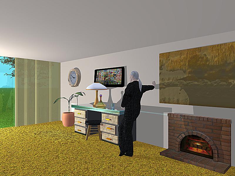 Occasionally I create a graphic that, even when optimized for the web, takes along time to download. The reason this happens has to do with the fineness of detail in the graphic. The above is a thumbnail, a smaller, highly optimized version of "reflections on a Sunday afternoon". If you wish to see the graphic as originally intended , and are very patient if on a dial up connection, or have broadband, CLICK HERE NOTE: You will need to hit the back arrow on your browser to return to this page.