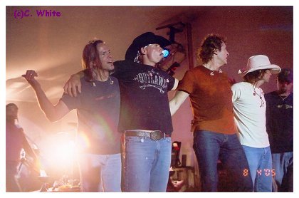 Bull led the entourage until he turned off and the 'Trace' mobile took over from there until we reached Lori and Tracy's. Once there, a campfire was built and we all (Tracy, John, Matt, Tyler, Lori, Heather, Kristina, Taylor and myself) sat around singing while the guys played guitars and told stories of the wild west, riding horses and saving cowboys and at a time when men were men and it was no fun being sheep!! LOL It was way into the wee hours of the morning before we all retired to embrace the second leg of our journey. But not before Lori and I prepared some of the VIP passes she had made, until we could no longer see straight. Sometimes being cross-eyed is not a bad thing.