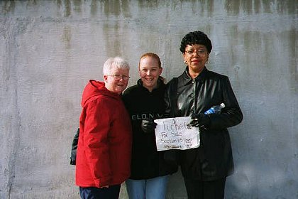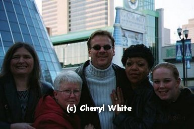 Later that evening, it was off to the Spaghetti Factory for "meat" and pasta, then downtown to Tootsie's Orchid Lounge to see Darren playing with a local band. After some more club hopping, it's off to the hotel...Brrrr, it was freezing. Hey there's a taxi...never mind! LOL Since my abductors turned out to be some very nice ladies, our mission the next day was to sell a ticket to the New Year's Eve party after a stop at the Pancake Pantry for some more "meat" (LOL) and by now, we'd been joined by Carol (another nice lady). We were only asking face value so...no we weren't scalping Phil...that could have been quite embarassing. LOL $49.50 was also the ransom amount they were asking for me in exchange. Kindof adds a whole new meaning to the term cheap! :) I was eventually released New Year's day...something about my needing too much "meat" turned out to be my way to freedom. LOL Next, it was off to Seanachie's Irish Pub (errrr?) and then back to the hotel to change for the evening's festivities, then to Rippy's rib joint across the street from the Gaylord Entertainment Center but wait.....! Could Phil be in that radio station broadcasting truck being interviewed??? (Bless you Carol!!)