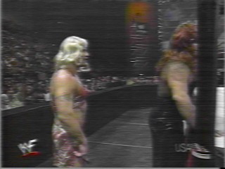 Gangrel Vs. The Rock. The Hardy Girlz come out to interfere and Edge and CHRISTIAN come out and run them off.. AND WHAT A RUN IT WAS!! MY GOD CHRISTIAN IN A FISHNET SHIRT.. HE HAS TO KEEP THAT!!!