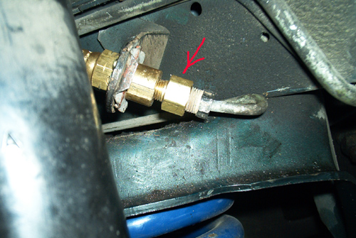The installation of the rotor and caliper are pretty straight forward. Just slide the rotor over the hub assembly and attach the calipers to the spindle with the caliper bolts. Now its time to attach the soft lines. The driver side goes right on. However, the passenger side is a different story. The SN95 soft lines use two diffent sizes from one side to the other. The passenger side needs to be adapted to fit. Dave's Mustang Parts includes the appropriate adapter for the installation.