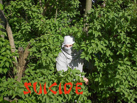 Suicide is apparently Ninja's cousin from back home... the Big Ninja that is... and he even looks somewhat like him, except for the fact that not only is his mask gray, but his whole bodysuit is gray (red pants now I think)... and skill-wise, it looks like he has not many, but he did beat Ninja and Splooge in a 3-Way Jobber Match long ago, so I guess he's a shred of skill... and he is still there, still losing... as I'm writing this, I don't think the guy has ever won a match where Splooge wasn't one of his opponents... interesting fact there... he's always funny and silly and such, and we'd miss him if he were gone... but I doubt he'll ever do anything eventful in his career... haha...