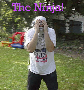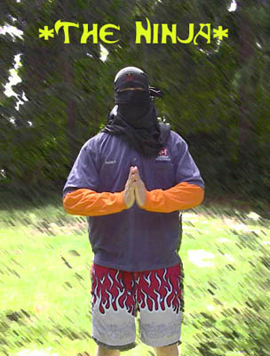 For so long, we were all dooped into believing there was one, and only one Ninja... but now the truth is out, and there had always been apparently 2 different guys acting as the Ninja... 1st, a slight history... Ninja, the predecessor to Mr. Splooge... the original goofball who could not connect with a move (well he can, more than Splooge, but in general misses a lot)... the Ninja has been around since EWA1, and has survived through all the Revolutions! He had the worst record in EWA History, with more losses than everyone else (until Splooge recently broke that record), and several-time holder of the EWA Loserweight Title... now as for this 2-man myth... or should I say fact... recently, Ninja #2 has admitted to there being 2 Ninjas... Ninja #1 also spoke out, agreeing... Ninja #1 is a bigger man obviously, more humble, and was the original Ninja... Ninja #2 is smaller, and whinier, and likes to imitate more people, although both have done it... and he has been around since EWA2... they've switched on and off, and no one seemed to take any notice... throughout EWA2000 and EWA4, Ninja #1 took a larger role, and in the EWA Renegade Shows, Ninja #2 was the only one... they are said to be brothers, but some deny the allegations... anyways, in the new EWA Generation, Ninja #1 took back the role as EWA's Ninja, while Ninja #2(now calling himself Nijarette) took off to the WWF for possible success, which didn't last long! Ninja #1 has been wrestling regularly now in the EWA for awhile, whereas Ninjarette has disappeared... And also the lack of skill that #1 once showed is now fading... he is actually connecting with maneuvers and wrestling... can he be title-bound?! Probably not, but it's worth a thought... he's still losing a majority of the time actually...