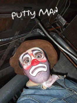 Putty Man, after having wrestled a couple matches and kicked out of the EWA, came back with a suspiciously fake-looking note from Commissioner Squires, saying that he had been appointed the new Commish! So if Squires actually officially handed his Commishing duties over to Putty, or if it was just a big hoax, all the EWA'ers seemed to accept it and lsiten to Putty's decisions! So this crying hobo-faced wacko with a high-squealing voice and lots of rambling, seemed to be the one to make the matches for the EWA! And for a looong time he seemed to have it in for Wolfman X, even making WMX hold the Loserweight Title for a decent stretch! WMX was pissed!!! But in a retirement match vs. Kitty Valentine that he set up himself, Putty lost due to Wolfman X himself getting some long-sought revenge and helping Kitty get the win! Putyy hasn't been seen in the EWA since...