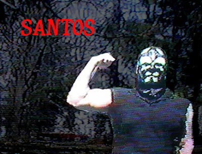 Santos has only made a couple EWA appearance, beating down Splooge, then Ninja, as well as dragging out Max Delirium once too... he claims to be the original Santos from back in the 1960's or whenever who was a legend in the Mexican Wrestling/Monster Movie scene! He is very proud of his muscles for his age of what he claims to be 60 something... especially his biceps! I don't see him ever really facing any of the EWA's main stars, but hopefully he'll show up again to humor us some more... is he the real Santos? We may never know for sure! But watch out for the clamp of his deadly Full Nelson, or blackness will be your friend!