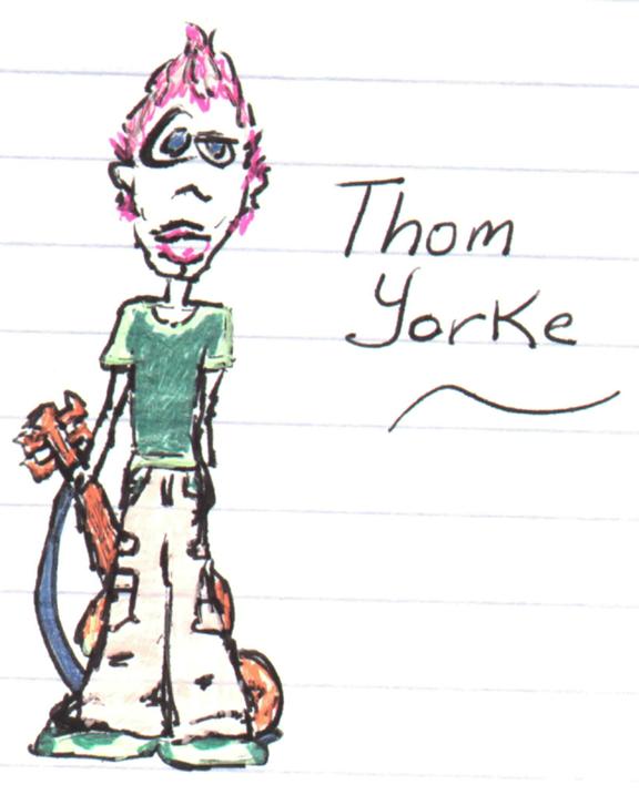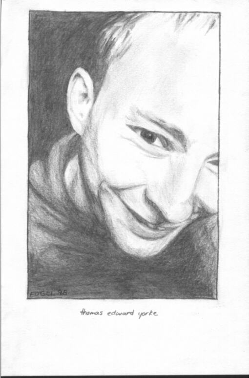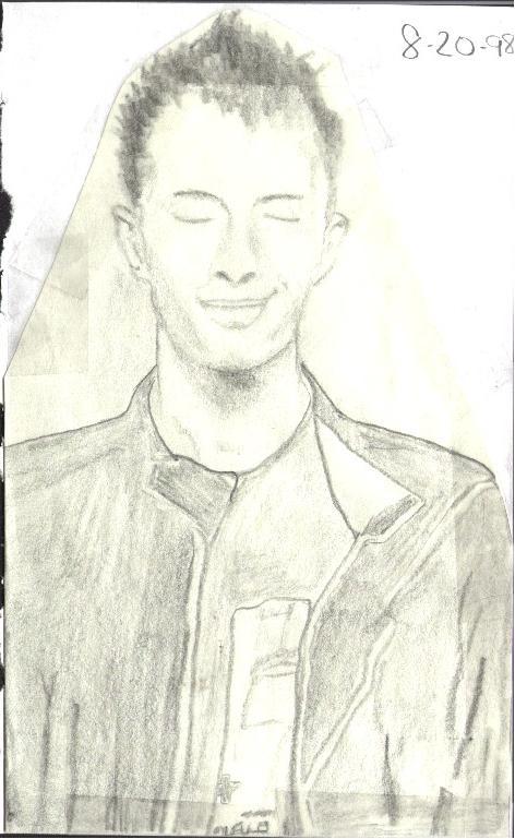 this is a drawing of the band by a friend of mine, connie donlon. =) ***THESE TWO ARE SPECIAL PICTURES SCANNED FROM "RADIOHEAD: FROM A GREAT HEIGHT" WRITTEN BY JONATHAN HALE. THOM IS ONLY 19 YEARS OLD IN BOTH.