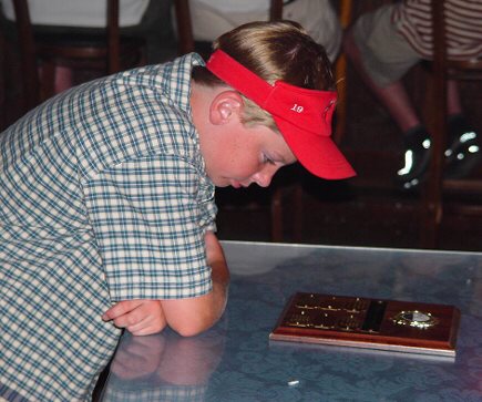 Liam Jr. reads the names of past winners on the Poppa Lou Trophy. |