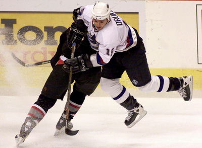 Rhett Warrener (D-) - Warrener's defensive partner Jay McKee played much better than Warrener last night. Warrener, normally a hitter wasn't playing his game in Vancouver. I know he's just returning from his injury this week, but he needs to play his rugged brand of hockey that we saw him play around this time of the year last season. He started off the game with a costly turnover trying to rush up the ice with the puck. Around center ice, he was stripped of the puck and the Nucks went on a 2-on-1 break capitalizing on Warrener's mistake. With about five minutes left in the first period, Warrener foolishly shot the puck around the boards right to Ohlund at the point. The result was a quality scoring chance from Vancouver that started with Ohlund's shot from the point. He was nowhere to be found on the Canucks third goal scored by Bertuzzi right in front of Martin Biron. So much for Warrener being a crease-clearing defenseman that he's known to be, or at least on that play. He looked out of place late in the game. With just under two minutes left in the game, the Canucks had a 2-on-1 rush and Warrener didn't even try to get back into the play.
