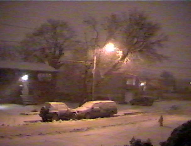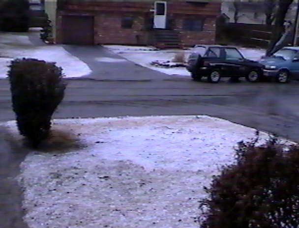 By Sunday afternoon, Feb 4th, the computers were saying that the coastal storm would be somewhat stronger than expected. Therefore, as it went past Long Island, it would bring in some colder air, and the rain would change to snow late in the day and end by midnight with a 3" accumulation. Monday, Feb 5th - Light rain started at 9 AM, temperature 40.3. By 10:30, it became steady at a moderate rate, temperature 38.7. Just after 11, large snowflakes started to mix in, and by 12:15 PM, it was all snow, temperature 36.1. By 1:15, there was a 1/2" of snow and slush on the ground and roads, temperature 33.9.