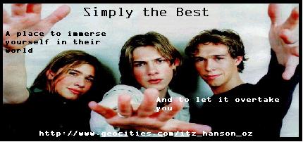 These are the Hanson sites that I adore, the campaigns I support, etc. I realize some pictures are broken, so you don't have to tell me. As far as I know, the links still work. If a link is completely broken, please e-mail me. Also, if you would like me to add a banner or link here, fill out my handy form at the bottom of the page.
