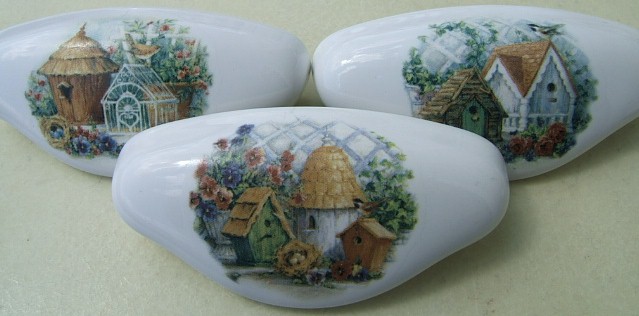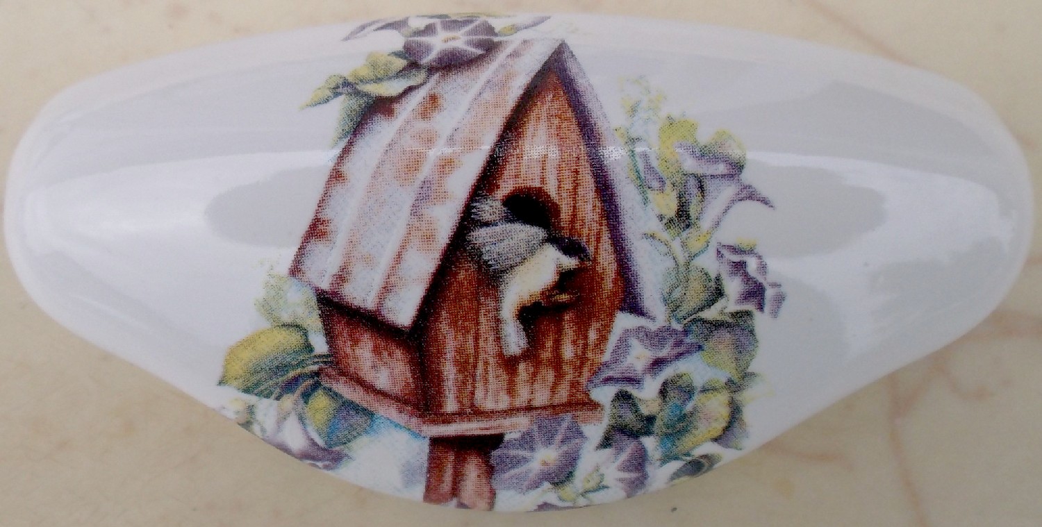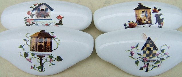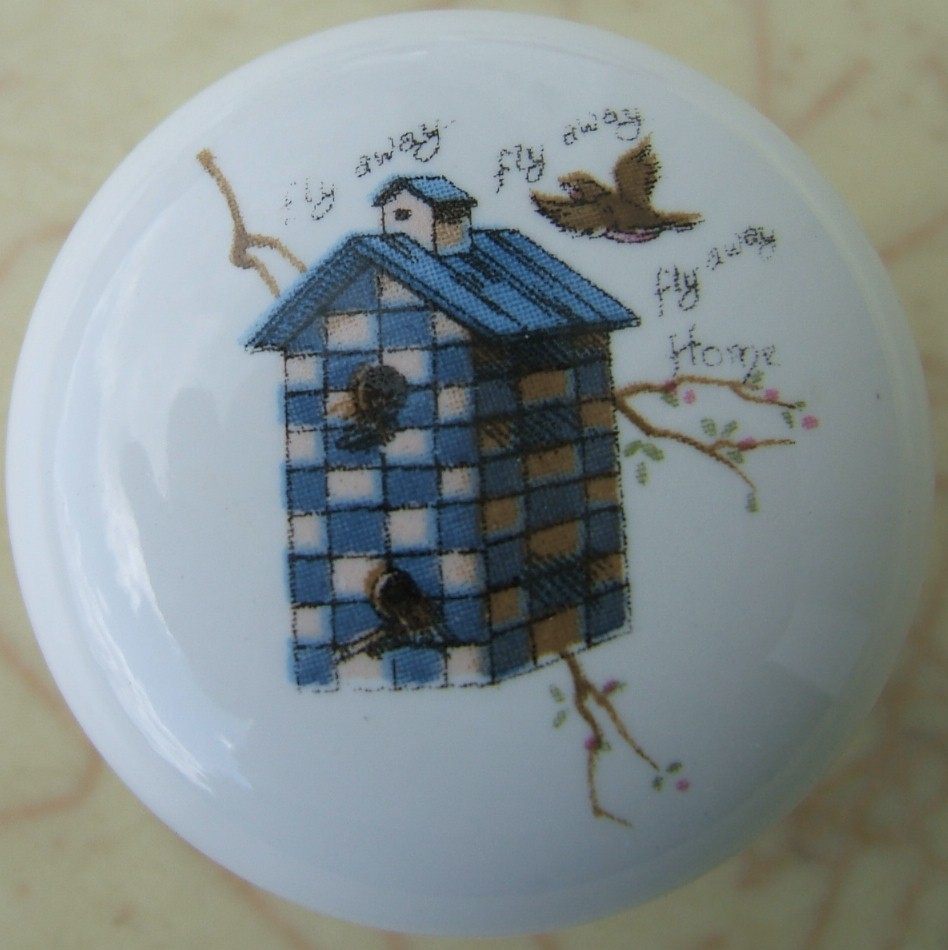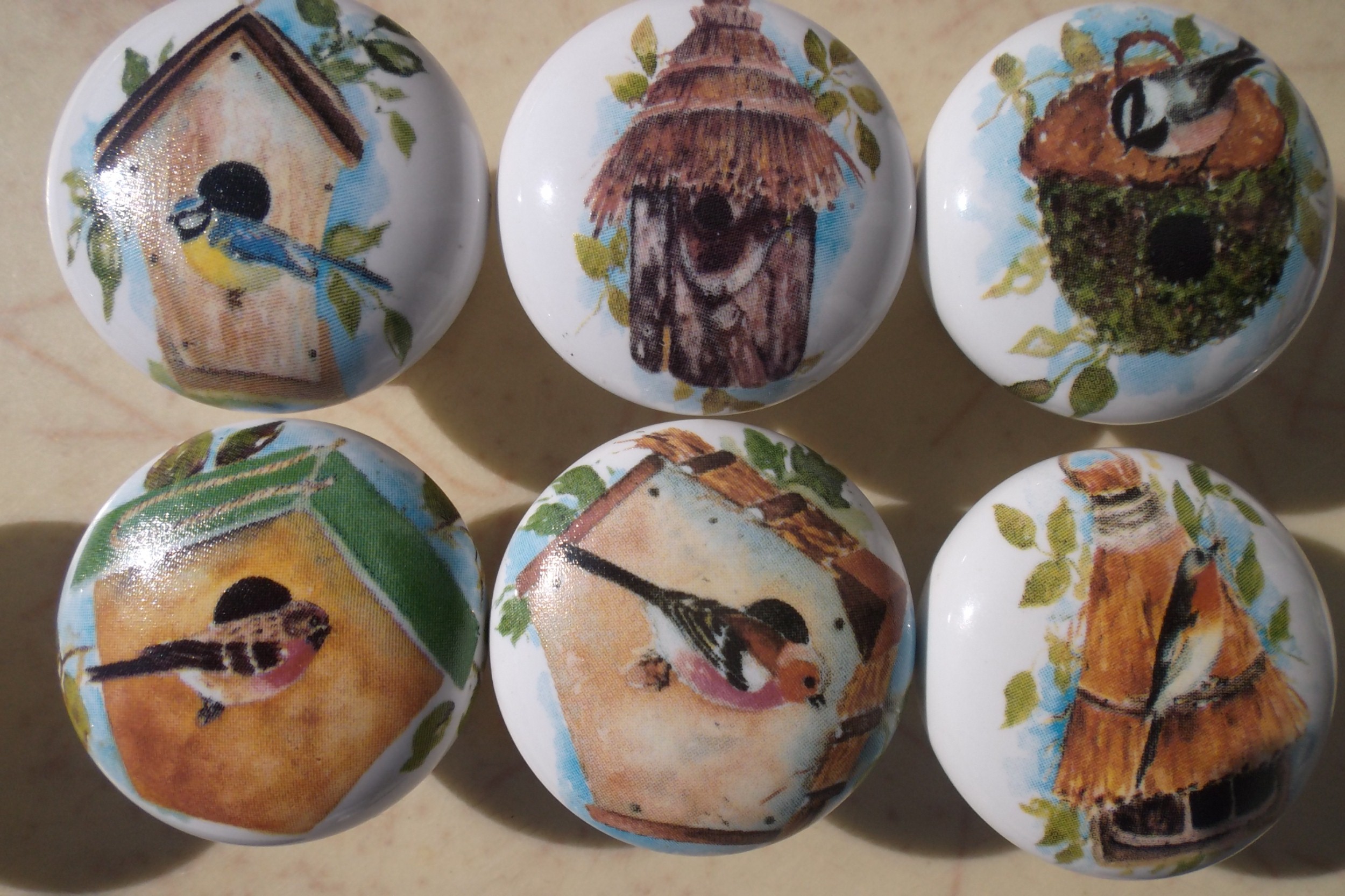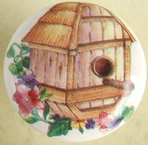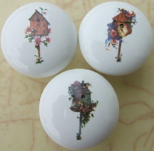 Ceramic Cabinet knobs with Birdhouses Bird House Birds Nest |