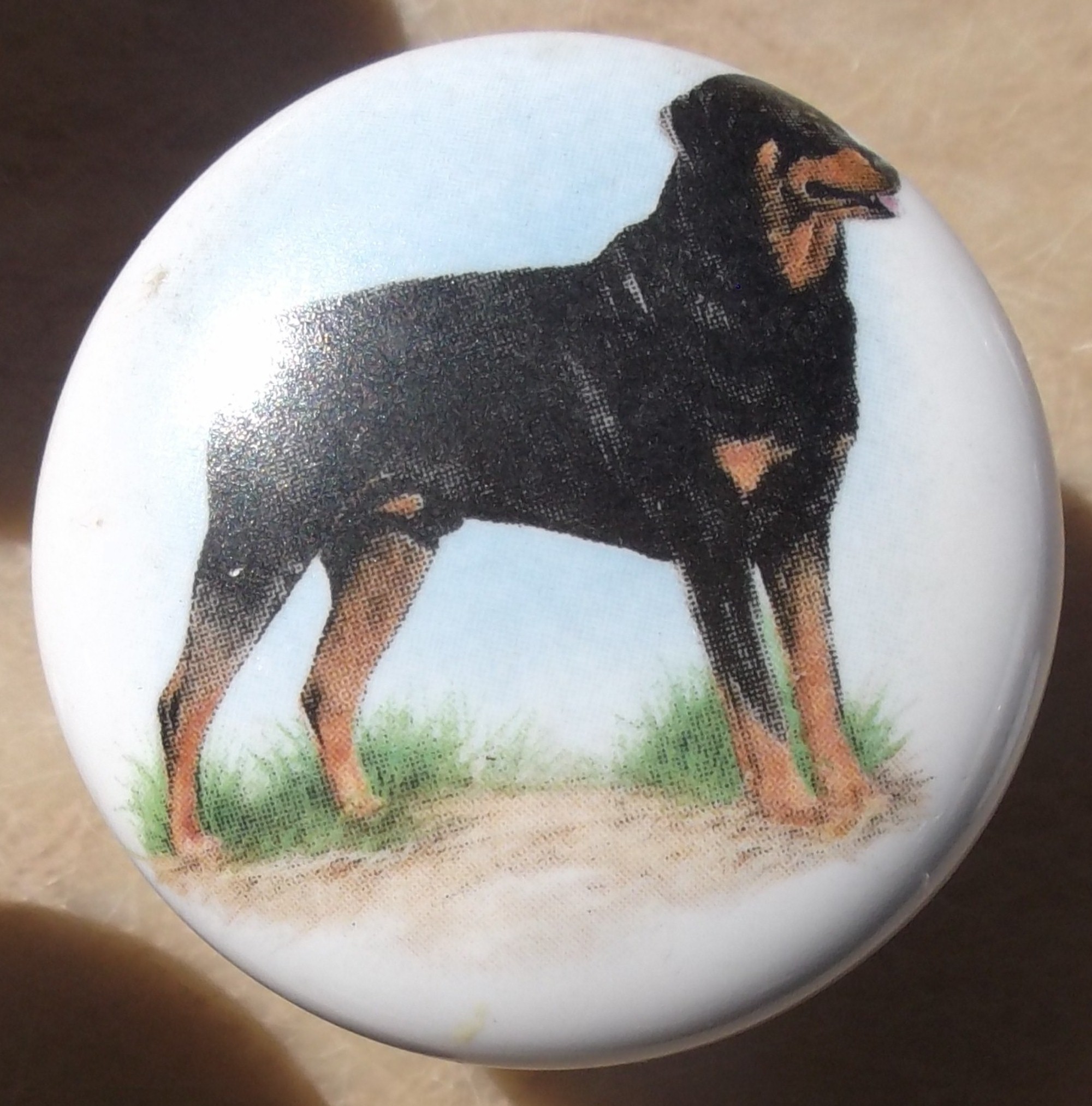 Ceramic Cabinet knobs with ridgeback rottweiler dogs |
