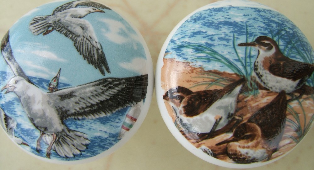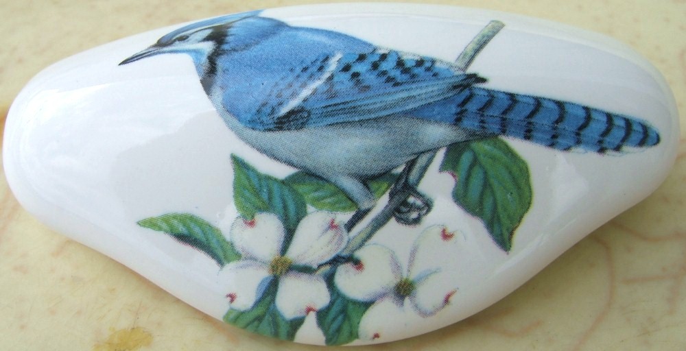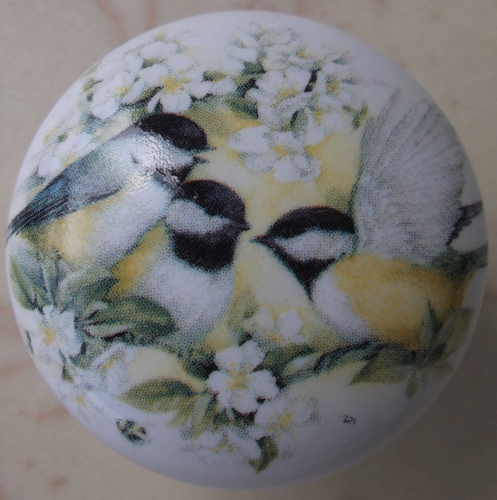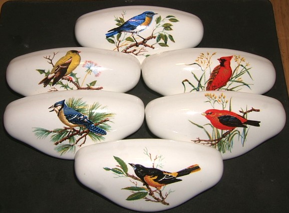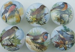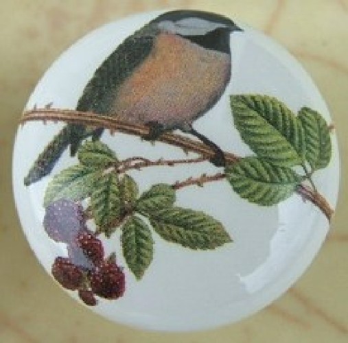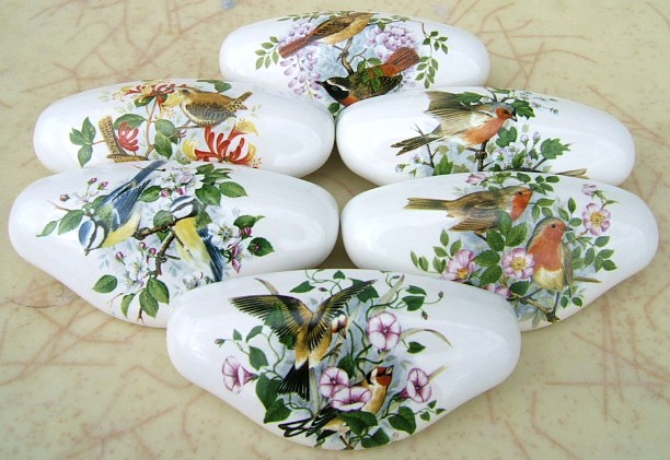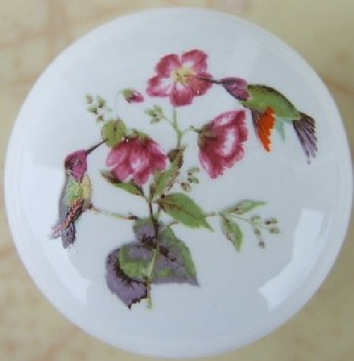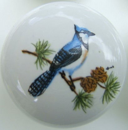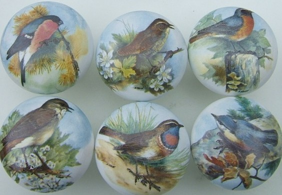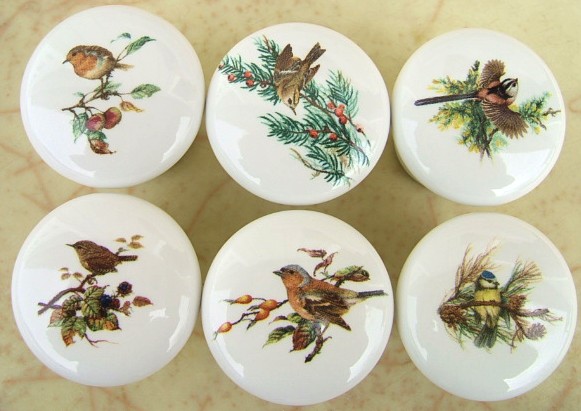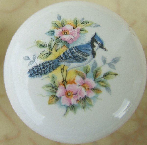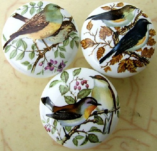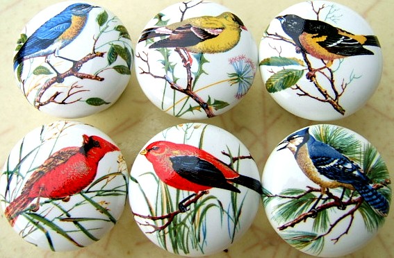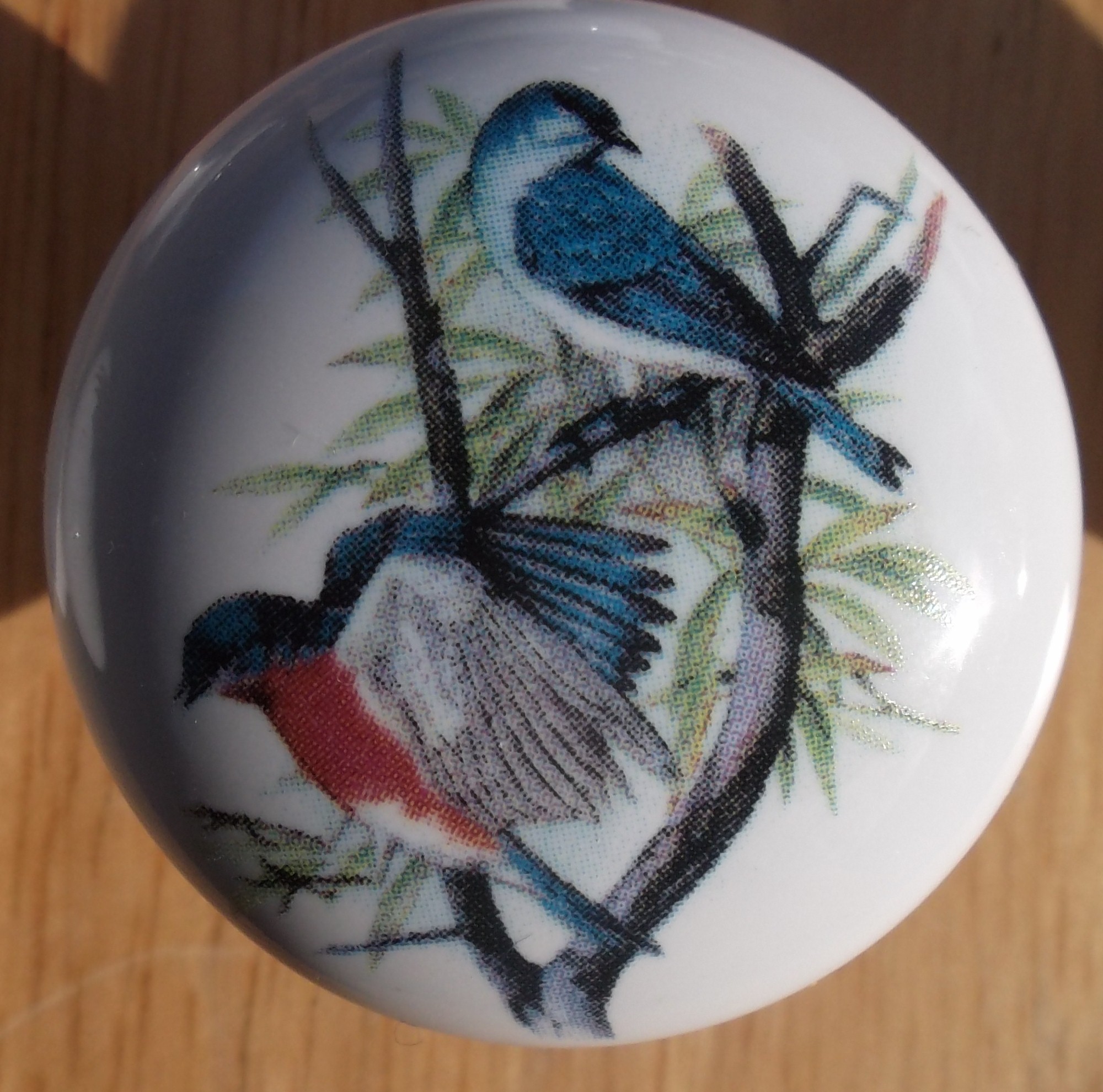 Ceramic Cabinet knobs with Domestic birds humming bird robin blue jay bluejay cardinal sparrows chickadees blue bird |