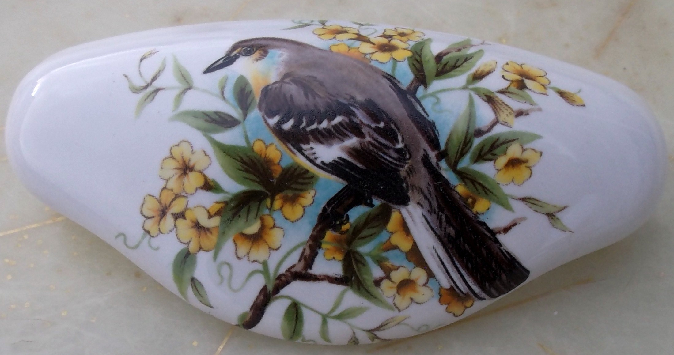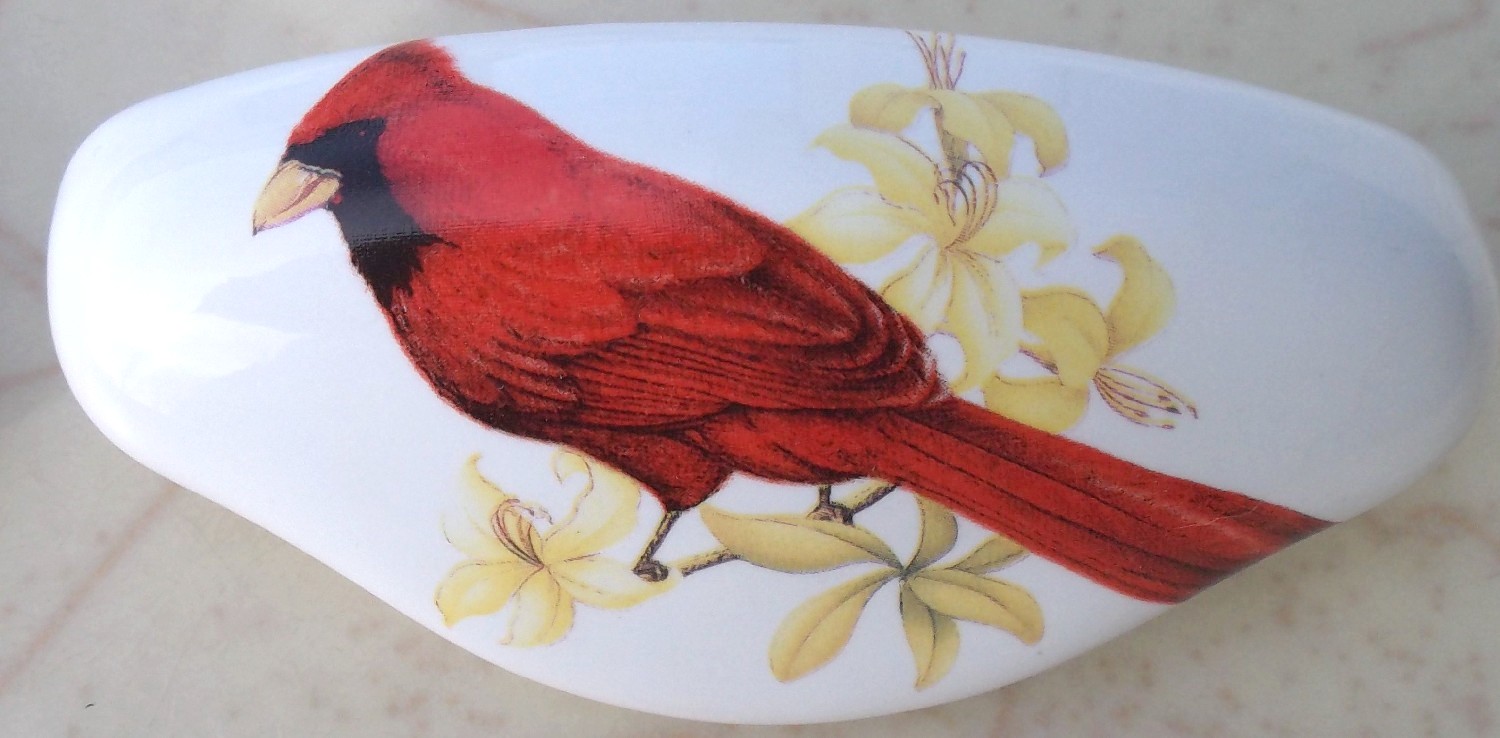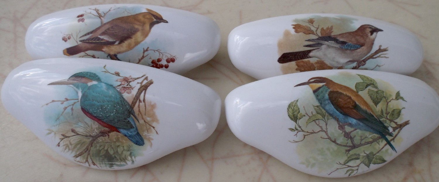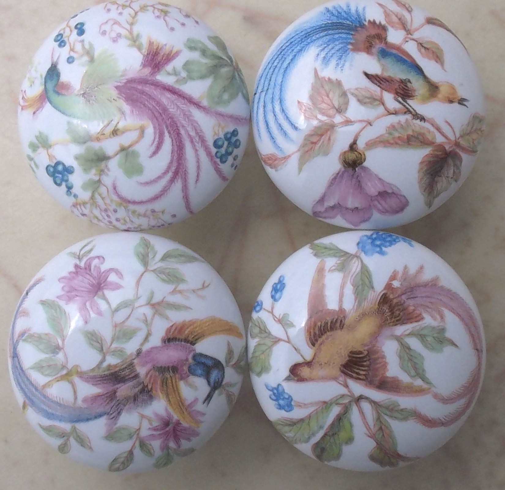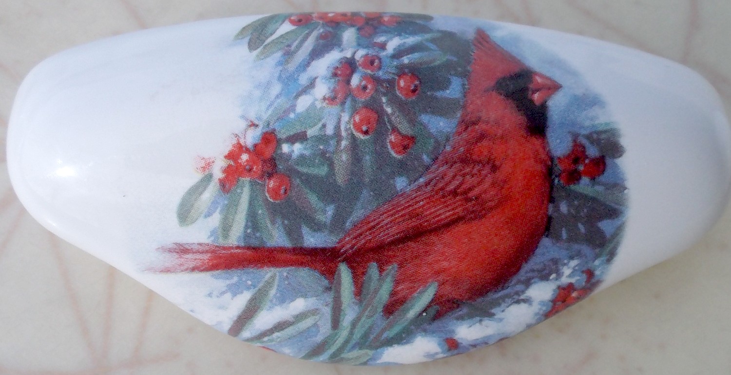 Ceramic Cabinet knobs with Domestic birds humming bird robin blue jay bluejay cardinal sparrows chickadees blue bird |