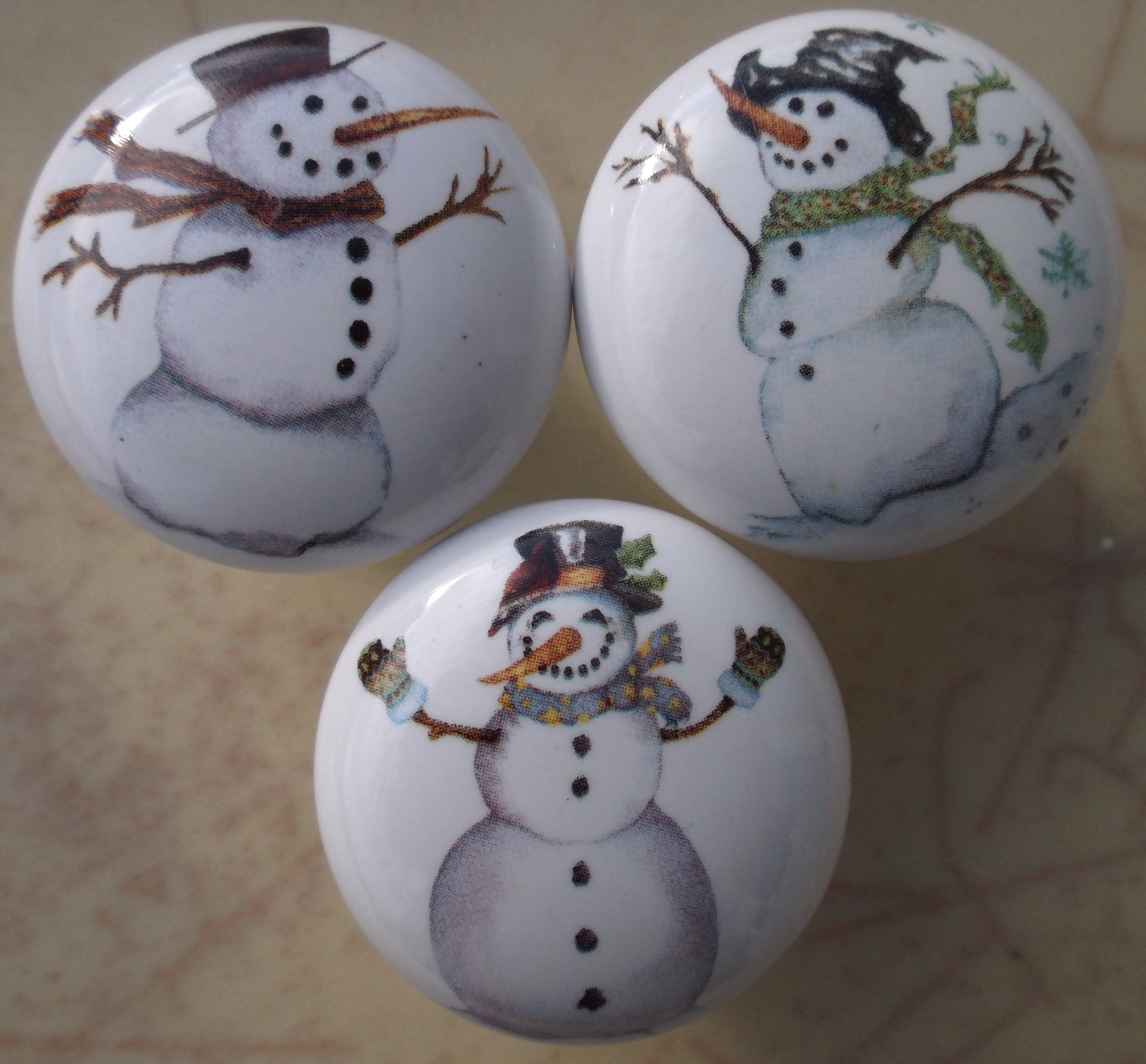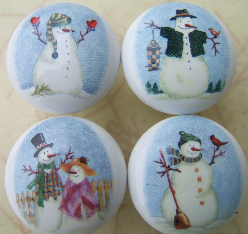 Ceramic Cabinet knobs with Snowmen Snowman Christmas Decorations |