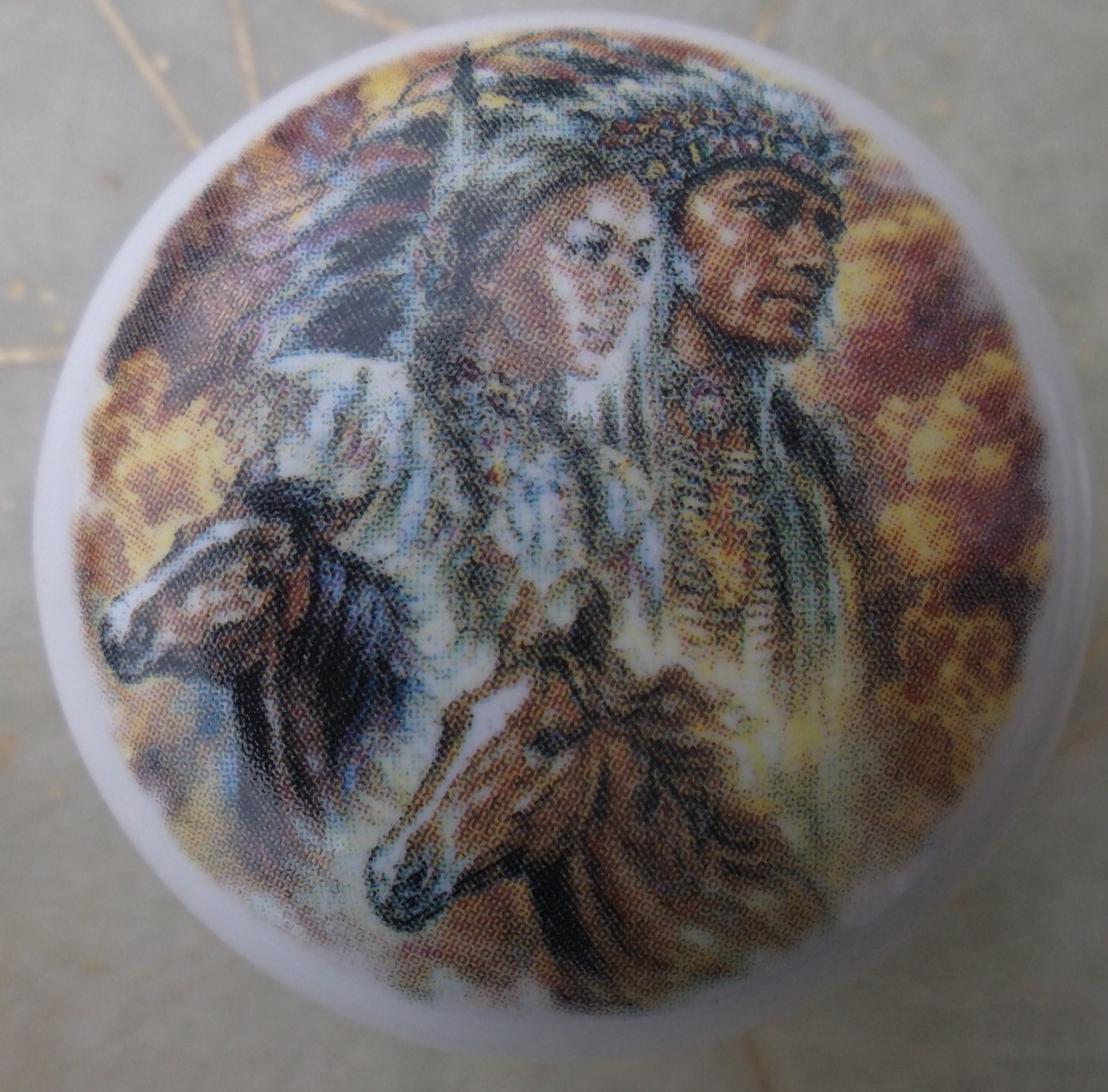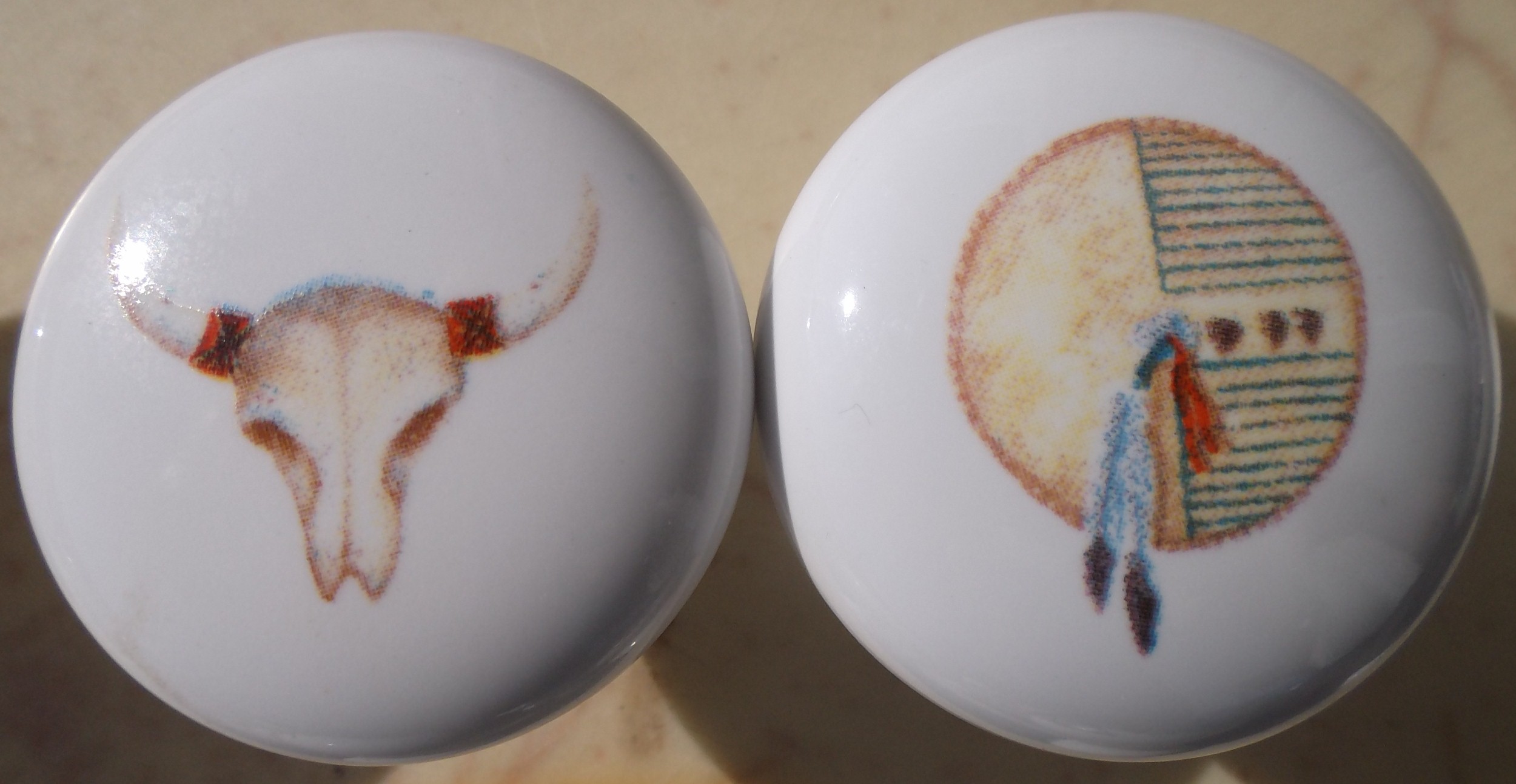 Ceramic Cabinet knobs with Southwest Images Indians Indian Buffalo Cowboy |