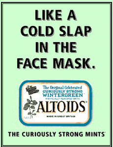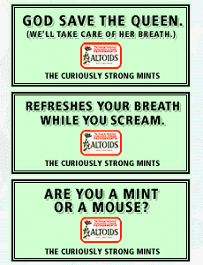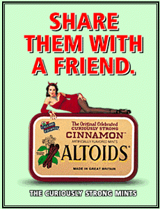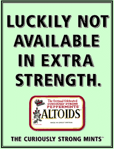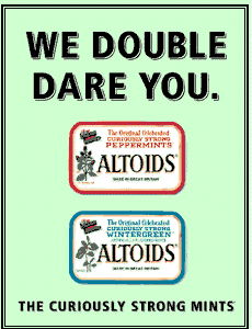 I don't even know why altoid's ads fascinate me so much. but then again, everything fascinates me. Trust me.. There are more of these. and I WILL find them!!! If you want to find them... they are usual at the back of eahc issue of Maxim.