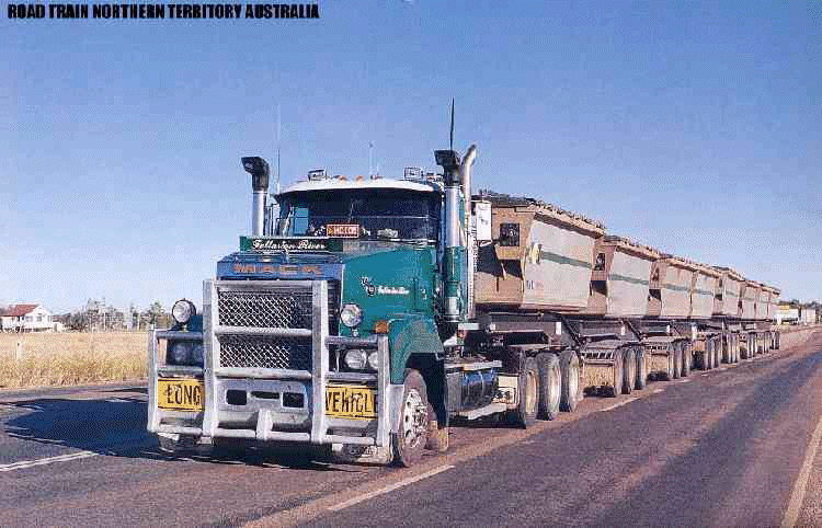 Another item unique to Australia is known as a ROADTRAIN....best described as huge vehicles which transport supplies to the hardest to reach areas of the island continent....