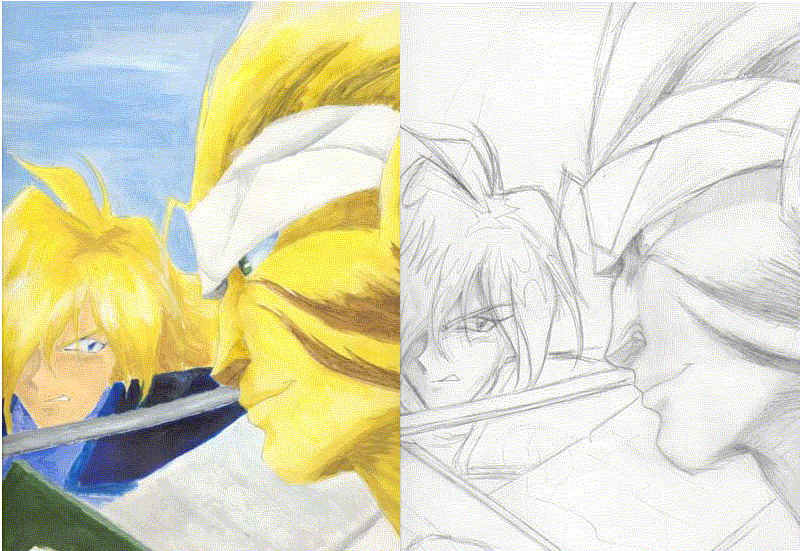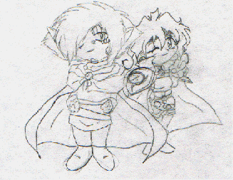 Not very much here.... But hey, it's a start! I'm not very talented though... However, I still try! You have to at least give me that. And trust me, I'll get more done, except my scanner is seriously broken now and there's really nothing I can do about it.. Sorry! If you want to send me in fanart from any anime series , (PLEASE DO! ^^;) go right ahead! I used to have more, but I accidentally deleted the list of people who sent to me, So I can't post without giving credit..