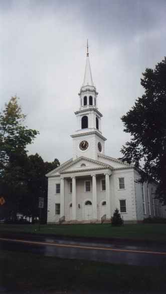 Eine typische Kirche, wei? aus Holz, elegant.