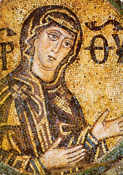 The images of Saint Epiphanius and the Virgin Mary are from mosaics in the Cathedral of Saint Sophia in Kyiv, Ukraine.