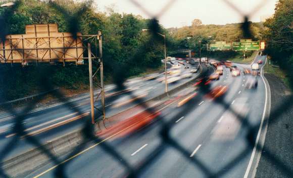 the safety fence of the Cloverdale Blvd. walkbridge. We're looking