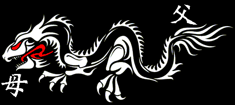 The symbol by the mouth is the chinese symbol for "Mother", and the symbol above the tail is the chinese symbol for "Father".