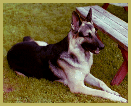 When we got to the place where King was that day we nearly fell over to see how he was being treated. They had him tied to a barn door with a chain that you could pull a car with and had no collar. The hair around his neck was getting pretty thin from the weight of the chain and him pulling on it when he tried to reach his water or food dishes. The son of the people that owned him put a dish of water down for him as there wasn't any when we arrived there. I guess they were trying to impress us that he was cared for. The dish was placed just out of his reach so he really couldn't get to it so this caused him to lunge and pull on the chain trying to reach his water or food. Then the kid would walk over and kick him in the head and laugh at the dog because he couldn't get to the dish and called the dog stupid. The people that had him had advertised a black and silver shepherd "without papers" forsale for $50. So we gladly payed the money and left. I would have paid alot more just to get him out of there.