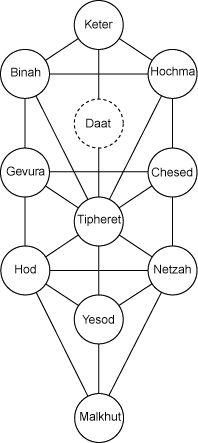 Adam Kadmon – The primordial man of the Jewish Kabbala. Adam Kadmon was the first man, the perfect prototype created by God. He embodies both the male and female, and his image describes the divine symbolism of the human body. He is represented by the ten sephiroth, the circles of divine creation. Those are Keter (crown), Hochma (wisdom), Binah (understanding), Chesed (mercy), Gevura (strength), Tipheret (beauty), Netzah (victory), Hod (splendour), Yesod (foundation), and Malkhut (kingdom). The final sephira, Daat (knowledge), represents divine knowledge, and exists outside of the sephirotic tree.