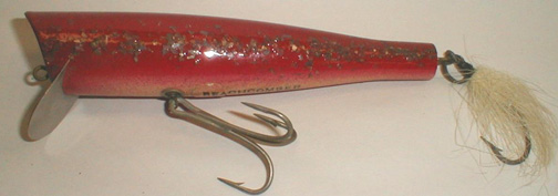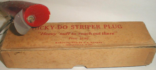 Next auction was a Hicky-Do Striper Plug made by R. E. Warren in Cedarville, MA. In seldom seen Red color & in the original box, this beautiful piece went for $200.00.