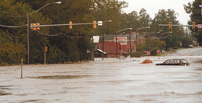 This is tenth street during the flood of hurricane Floyd Fall 1999