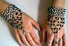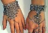 The handflower on the left has a faceted bead and silver tone rose bead. The other is snow flake obsian.