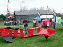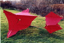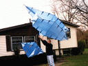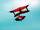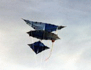 This kite was made for the Smithsonian Kite Fly in the Spring of 1999. Again, notice that the tail is of the single cell type. | |
