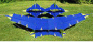 This blue and yellow beauty is a "Double Celled Variant". The back section can be rotated to 4 different positions. This has the effect of creating 4 different kites.