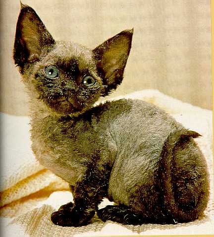 The Devon Rex has a look so cute you can't help but smile - huge ears, set low on the sides of the head frame, a pixie-like face with large, inquisitive eyes and a short slightly upturned nose. A coat of loose waves and curls covers a strong and supple body in a compact, refined form. These unusual features decorate a breed whose personality, intelligence, friendliness and inquisitive behavior are as unique as the package it comes in.