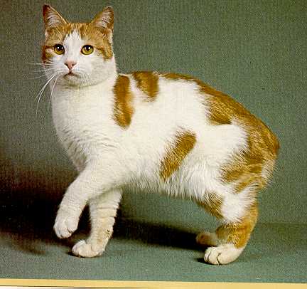 Besides taillessness, the Manx is known for its robust and rounded appearance. It has a very round head and rounded cheeks which give it a jowly appearance; even more so in the male cat than in the female. It is high in the hind quarters with the back legs much longer than the forelegs, thus causing the rump to be higher than the shoulders. The shortness of back forms a continuous arch from shoulders to rump. The eyes are rounded but set at a slight tilt toward the ear. The Manx has a constant sweet expression on his round little face.