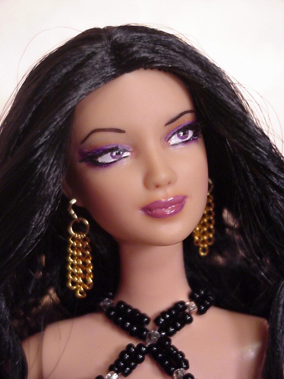 - Lingerie. Black satin strapless bra, panties, and hose. Also removable.