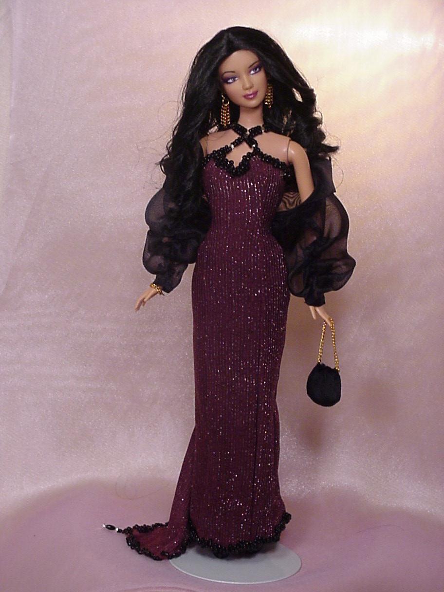 - Custom Gown in maroon & silver knit, with removable sheer black jacket. Black seed beads were handsewn at the edges, as well as making up the straps. Gown has short train in back. Removable to reveal.....
