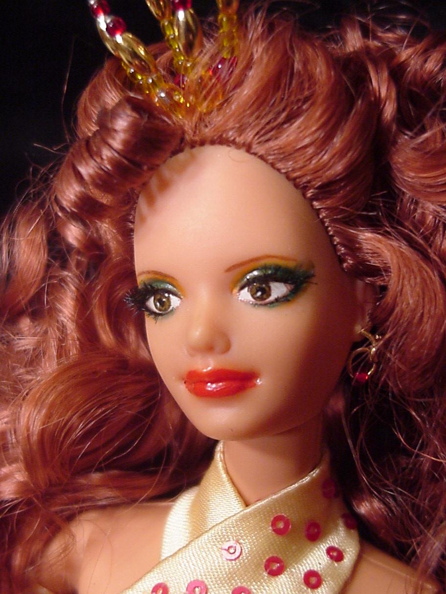 - Total repaint! All factory original paint safely removed. Brown eyes with rooted top AND bottom lashes, shadowed in green and peach tones, Fire red lips. All paint sealed.