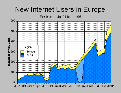 | 26 | 4.3 | Figure 4-10 | New Internet users in Europe, per month, July 1991 to Jan. 1995 |