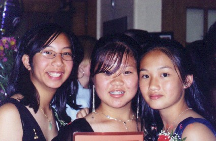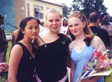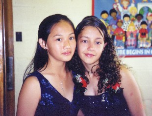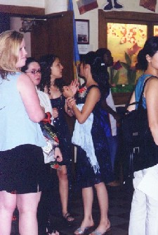 the gurliez posing for a group pic in front of the skool (from left to right...top row: inna,annie,daniela, n me...bottom row: inna's cuz (in the blu), jenny n hazelyn (in the white dress)...as u see, not every1 wuz lookin directly in the camera since there were too many cameras to look at!!